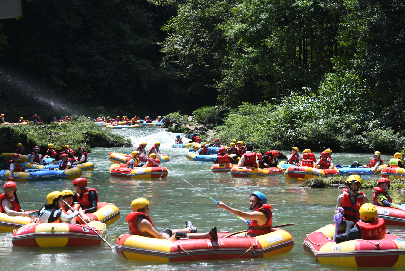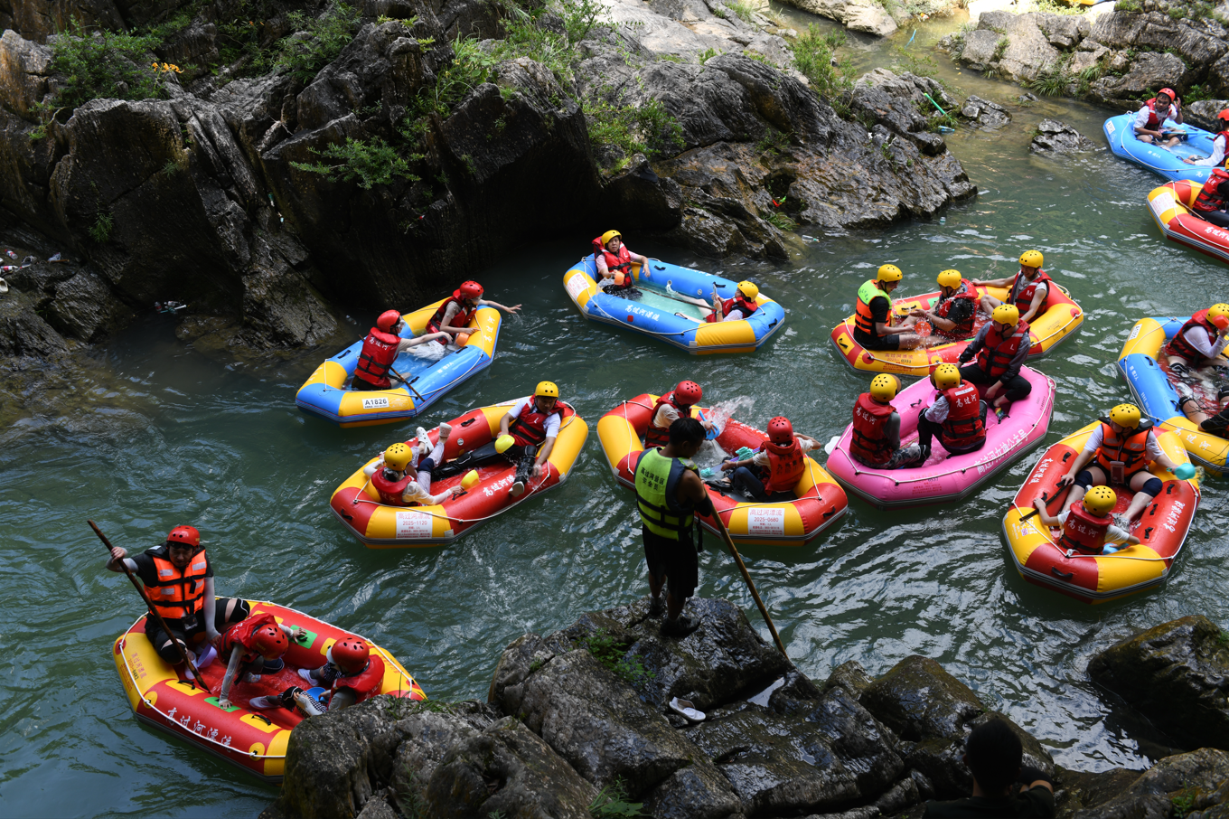 盛夏热浪席卷大地,贵州高过河漂流以其共同魅力吸引着各地游客蜂拥而至,在激流与浪花间开释热心,为当地“清凉经济”注入汹涌生机。