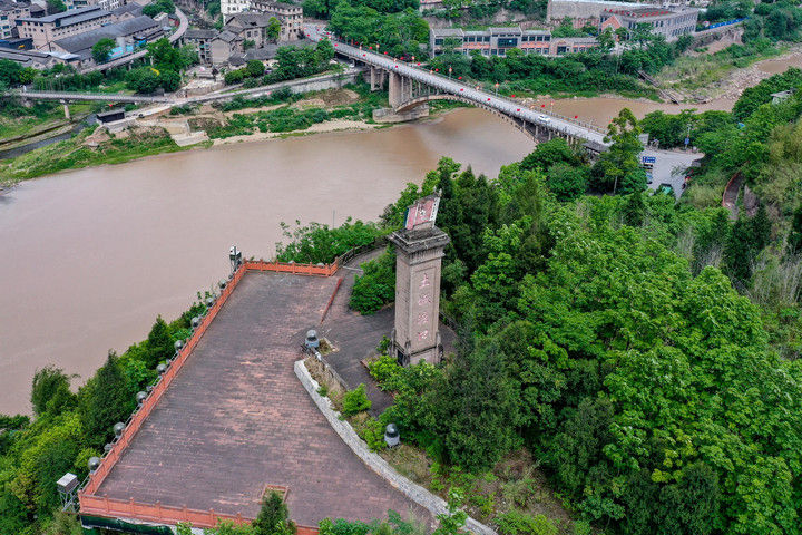 坐落赤水河畔的贵州省遵义市习水县土乡镇,是赤水河中游的重要码头,一起也被称作“躺在留念馆上的赤色小镇”。1935年,中心赤军在土城一渡赤水河,拉开了四渡赤水战争的前奏。这是2021年4月21日拍照的土城渡头留念碑(无人机相片)。