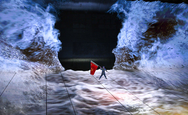2025年11月15日,艺人在贵州长征文明数字艺术馆进行《红飘带·巨大远征》全域行浸数字演艺。