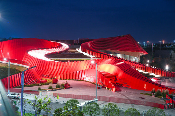 这是2025年11月15日拍照的贵州长征文明数字艺术馆——“红飘带”夜景。