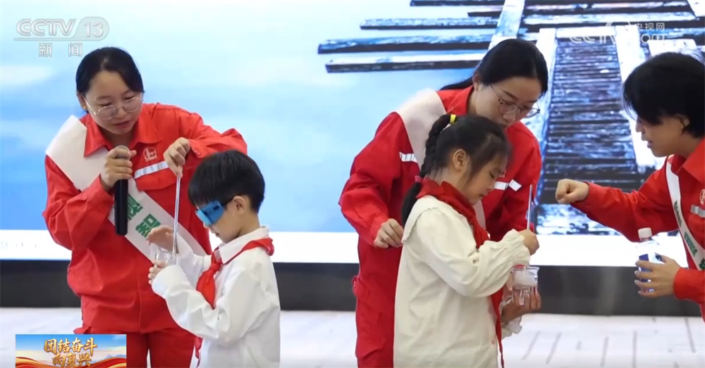最令人等待的“戏法”环节里,主持人将一团“白棉花”丢进水杯,它瞬间消失,风趣的实验悄然在孩子们心中播下了探究动力科学的种子。